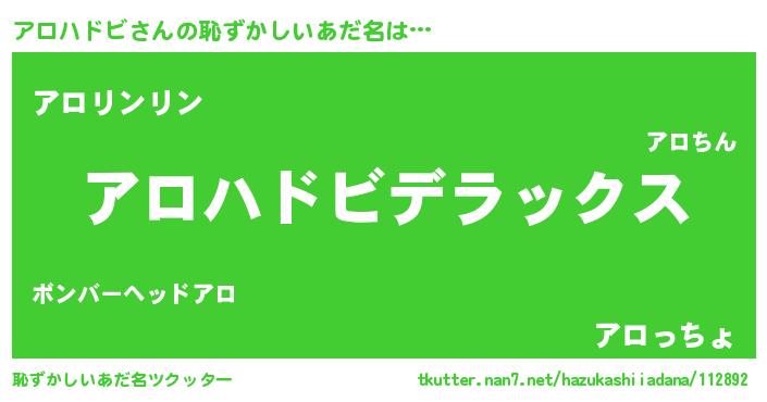 | 女子向けラノベタイトル風あだ名 | 『アロハドビなんてお断りですっ。』 |