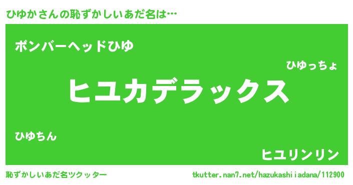 | ヒーロー風カッコイイあだ名 | 『サイバー戦士ヒユカ』『幻影騎士ヒユ』 |