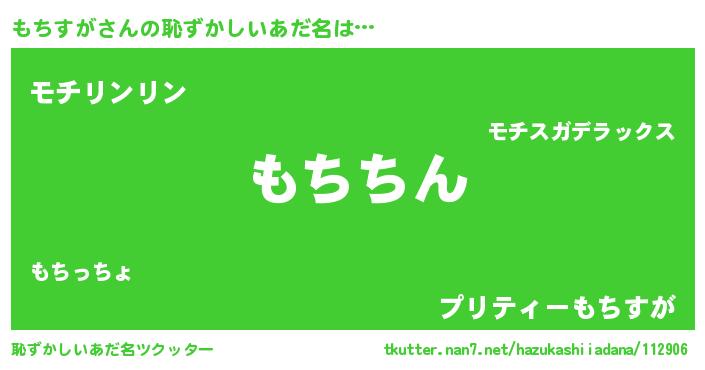 | ヘコむあだ名 | 『もちすが(苦笑)』『もちを』『豆乳』 |