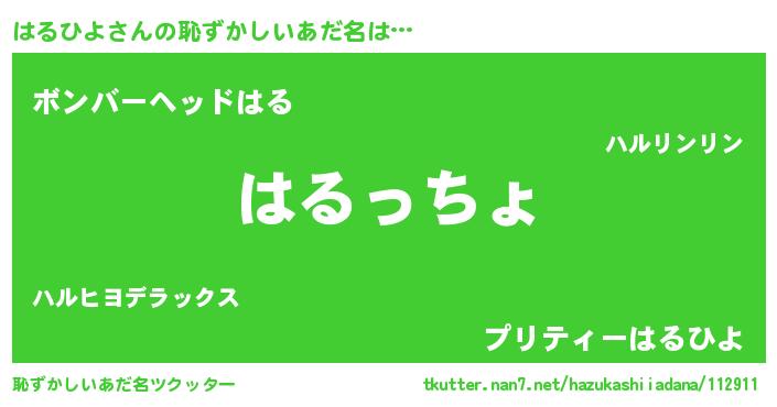 | ヒーロー風カッコイイあだ名 | 『ウルトラはるひよマン』『仮面ハルダー』 |