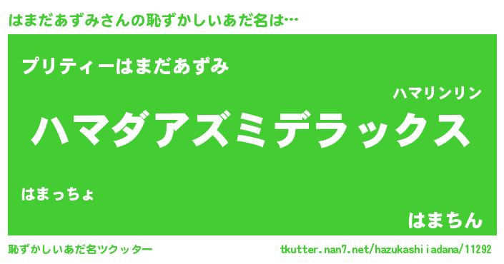 | ヒーロー風カッコイイあだ名 | 『究極戦士ハマダアズミ』『仮面ハマダー』 |