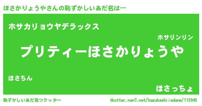 | 男性向けラノベタイトル風あだ名 | 『ホサカリョウヤアートオンライン』 |