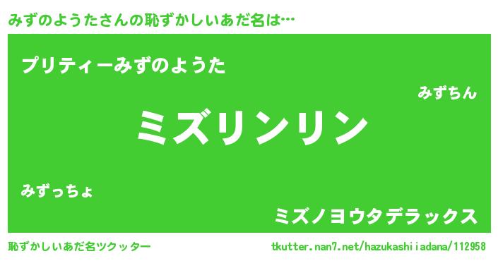 | 男性向けラノベタイトル風あだ名 | 『この素晴らしい世界にみずのようたを!』 |