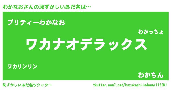 | ヒーロー風カッコイイあだ名 | 『サイバー戦士ワカナオ』『仮面ワカダー』 |