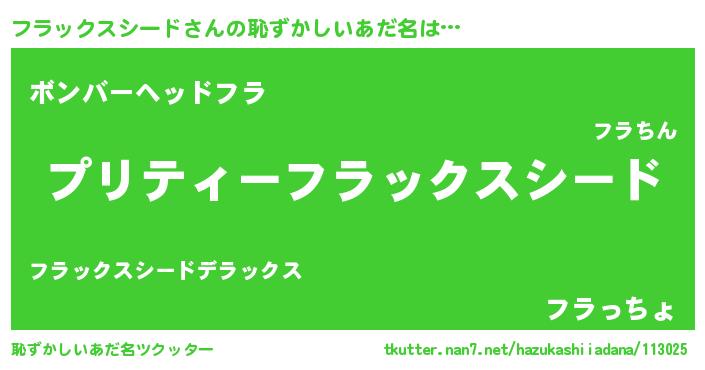 | 意味不明あだ名 | 『住所不定無職フラックスシード(39歳)』 |