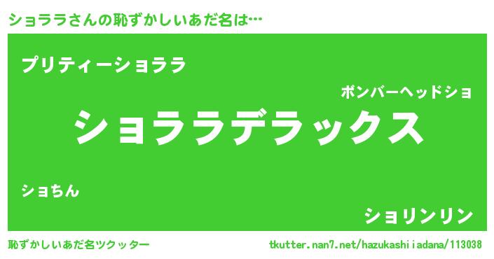 | 意味不明あだ名 | 『自称ショララ』『ペロリンショララ』 |