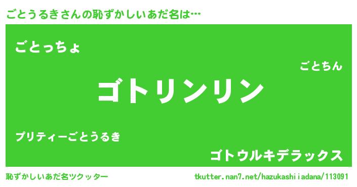 | 意味不明あだ名 | 『とにかく怪しいごとうるき』 |