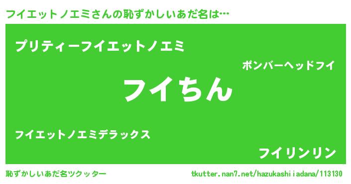 | 男性向けラノベタイトル風あだ名 | 『フイエットノエミという概念が存在しない退屈な世界 』 |