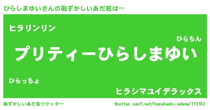 | 伝説のあだ名 | 『封印されしスナイパーひらしまゆい』 |