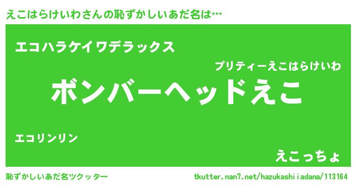 | ヒーロー風カッコイイあだ名 | 『正義の使者えこはらけいわ』 |