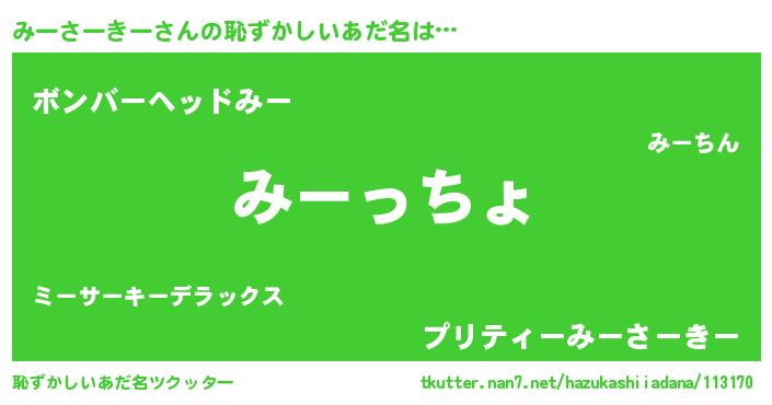 | 意味不明あだ名 | 『みーさーきーフォーエバー』 |