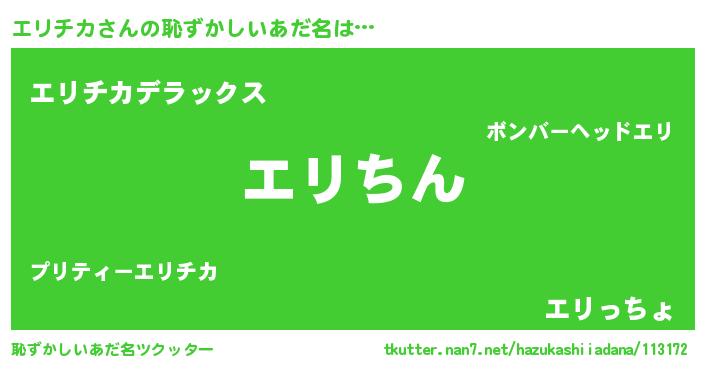 | 意味不明あだ名 | 『永久保存エリチカ』『自称エリチカ』 |
