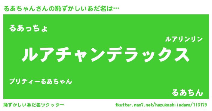 | 意味不明あだ名 | 『自称るあちゃん』『永久保存るあちゃん』 |