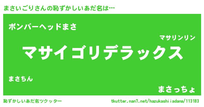 | 意味不明あだ名 | 『自称まさいごり』『永久保存まさいごり』 |