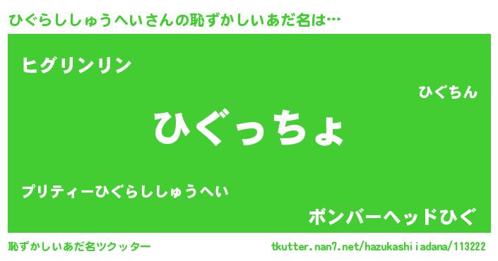 | 意味不明あだ名 | 『住所不定無職ひぐらししゅうへい(10歳)』 |