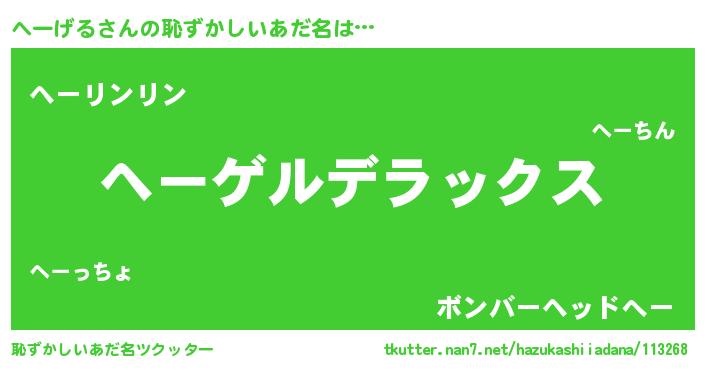 | ヘコむあだ名 | 『へーを』『へーげる(爆)』 |