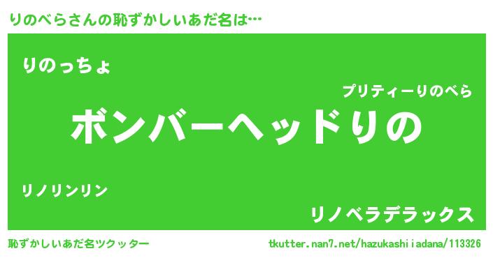 | ヒーロー風カッコイイあだ名 | 『慈愛の使者りのべら』『炎刃騎士リノ』 |