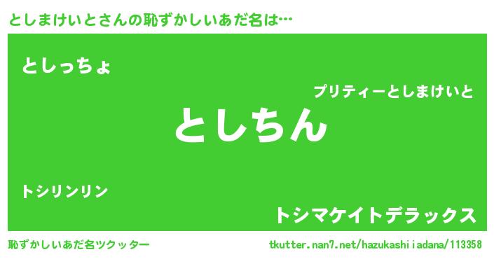 | 料理風あだ名 | 『としまけいとごはん』 |