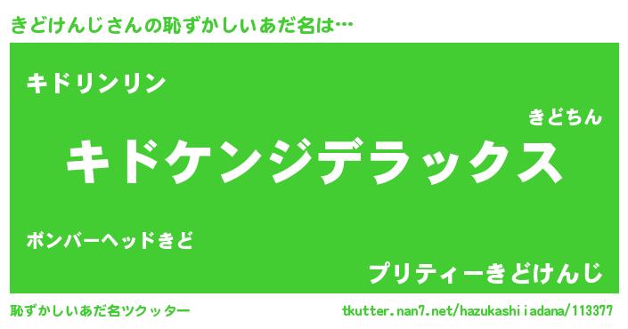| 男性向けラノベタイトル風あだ名 | 『Re:きどけんじから始める異世界生活』 |