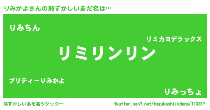 | ヘコむあだ名 | 『りみぷりん』『りみかよ(震え声)』 |