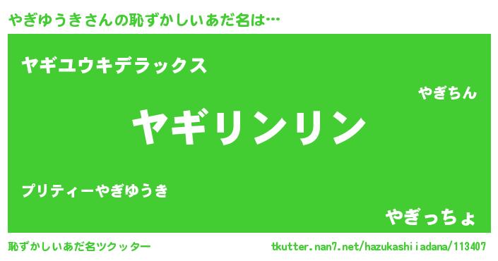 | 意味不明あだ名 | 『とにかく怪しいやぎゆうき』 |