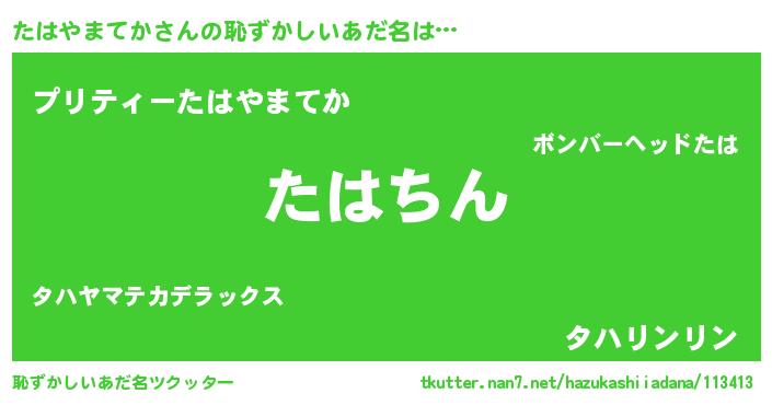 | ヘコむあだ名 | 『たはやまてか(笑)』『たはもー』 |