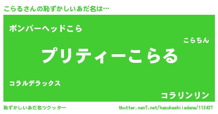 | 意味不明あだ名 | 『ペロリンこらる』『永久保存こらる』 |