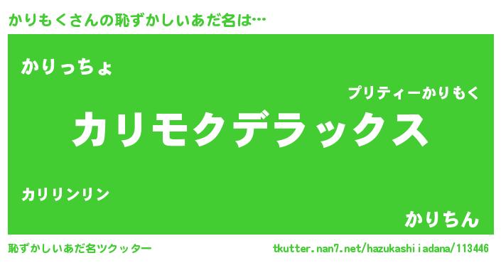 | 男性向けラノベタイトル風あだ名 | 『かりもくに滅ぼされるだけの簡単なお仕事です』 |