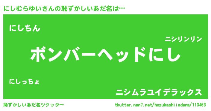 | ヘコむあだ名 | 『にしむらゆい(笑)』『にしっ子』 |