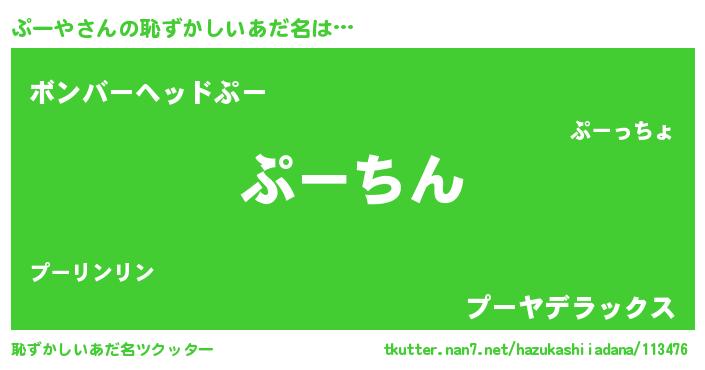 | 意味不明あだ名 | 『永久保存ぷーや』『自称ぷーや』 |