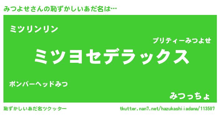 | ヒーロー風カッコイイあだ名 | 『サイバー戦士ミツヨセ』『幻影騎士ミツ』 |
