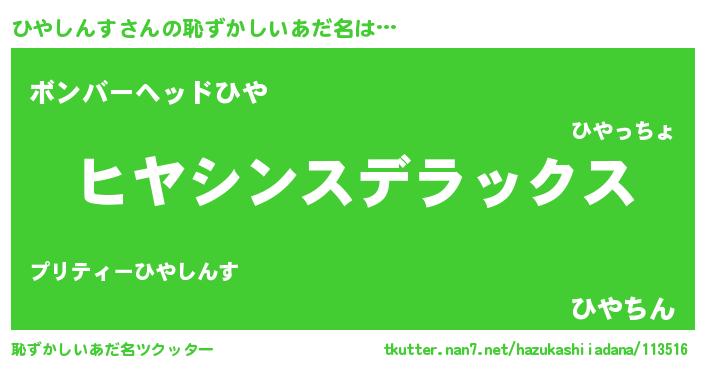 | ヒーロー風カッコイイあだ名 | 『究極戦士ヒヤシンス』『仮面ヒヤダー』 |