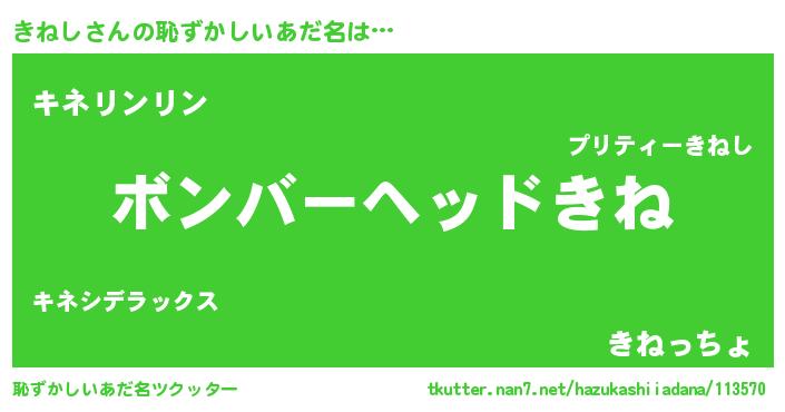 | ヒーロー風カッコイイあだ名 | 『正義の使者きねし』『幻影騎士キネ』 |