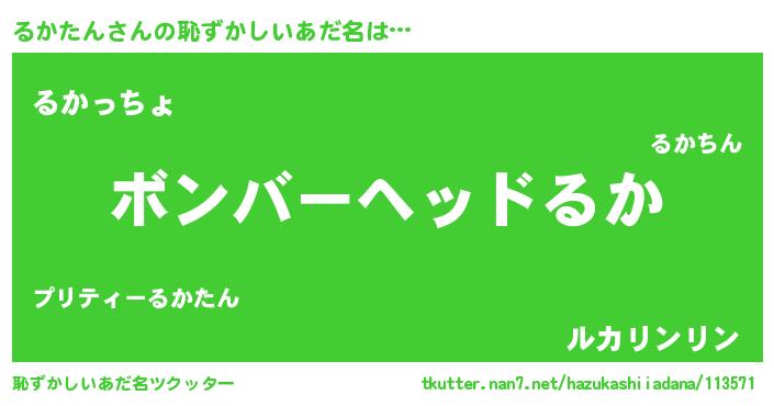 | ポケモン風あだ名 | 『ルックウザ』『ルカタダネ』 |