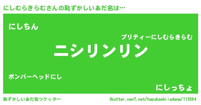 | ヘコむあだ名 | 『にしぷりん』『にしむらきらむ(遠い目)』 |