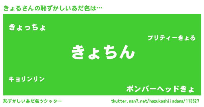 | 意味不明あだ名 | 『しいたけ科きょる属』『永久保存きょる』 |