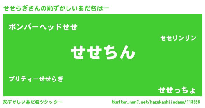 | ヒーロー風カッコイイあだ名 | 『ネオセセラギ』『仮面セセダー』 |