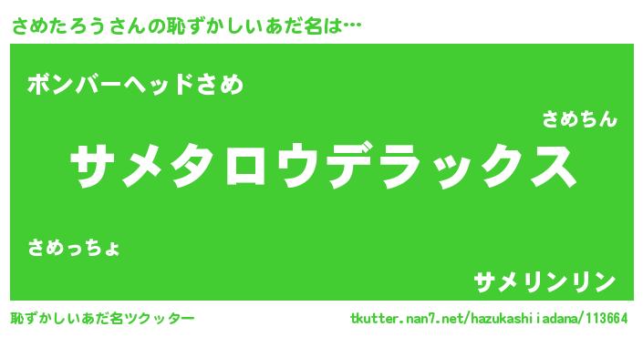 | 意味不明あだ名 | 『自称さめたろう』 |