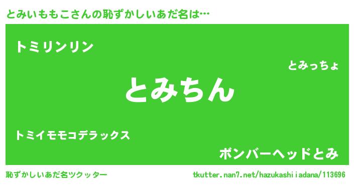 | ヒーロー風カッコイイあだ名 | 『仮面トミダー』『ネオトミイモモコ』 |