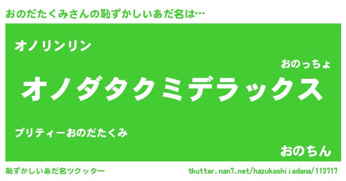 | 欧米人風あだ名 | 『おのだたくみ・ステッグマイヤー』 |