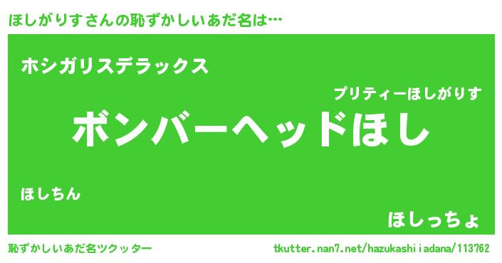 | ヒーロー風カッコイイあだ名 | 『天空の使者ほしがりす』 |