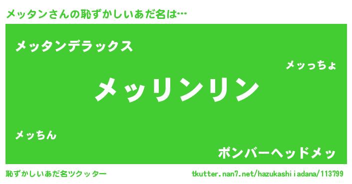 | ヘコむあだ名 | 『メッっぺ』『レバニラ』『メッもー』 |