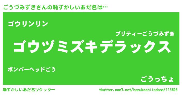 | 男性向けラノベタイトル風あだ名 | 『転生したらごうづみずきだった件』 |