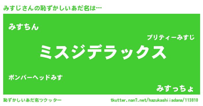 | 意味不明あだ名 | 『自称みすじ』『永久保存みすじ』 |