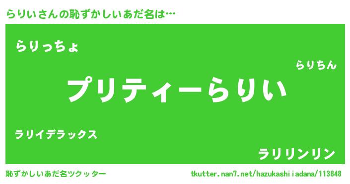 | ヒーロー風カッコイイあだ名 | 『スーパーラリイ』『ウルトラらりいマン』 |