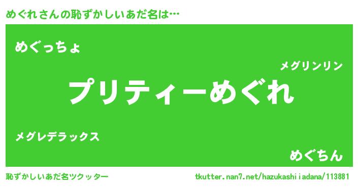 | ヘコむあだ名 | 『めぐっふぃ~』『牛乳』 |