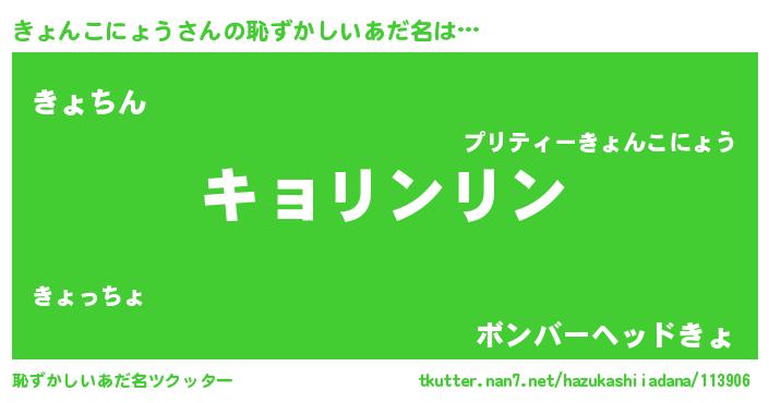 | 意味不明あだ名 | 『住所不定無職きょんこにょう(11歳)』 |