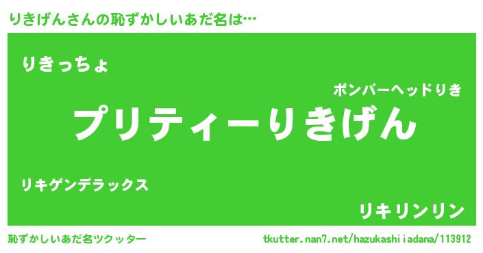 | ファンタジー風あだ名 | 『リキフェル』『エターナルリキゲンー』 |