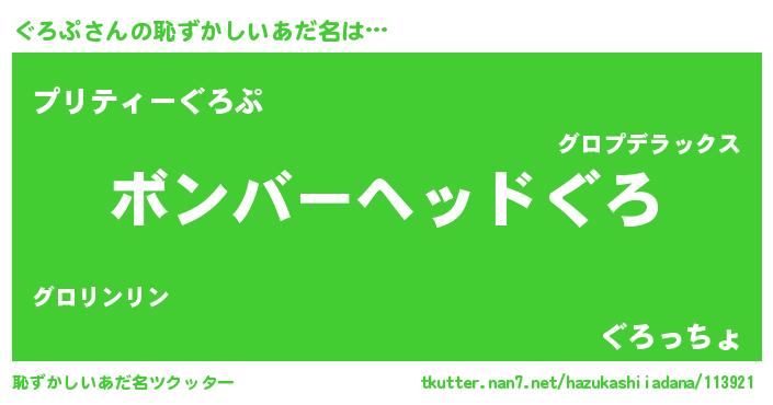 | ヒーロー風カッコイイあだ名 | 『愛の使者ぐろぷ』『スーパーグロプ』 |
