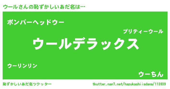 | 意味不明あだ名 | 『自称ウール』『めかぶ科ウール属』 |